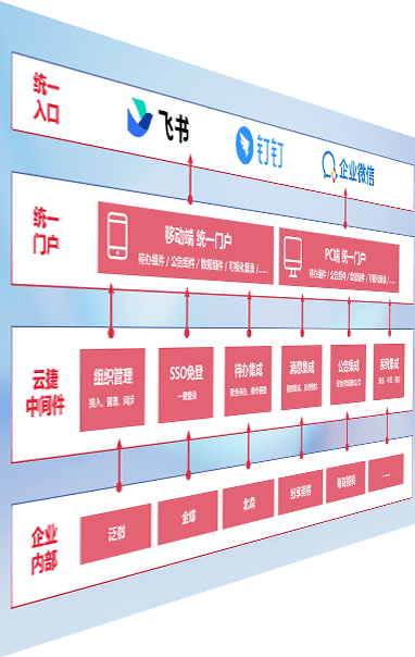 对协作平台提供支持服务,,,支持企业应用与协作平台对接,,,包含组织同步、、、消息集成、、、、待办集成等。。支持目前主流的协作平台:钉钉、、企微和飞书。。